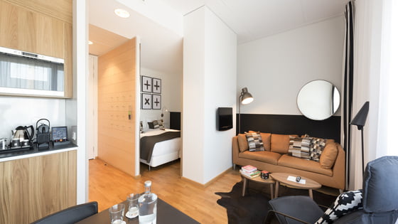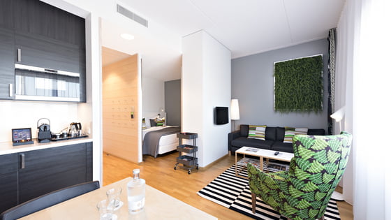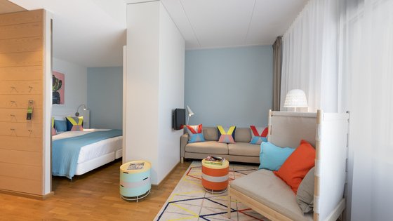 Alle hotelkamers zijn voorzien van een douche en een fleurig interieur, dat vormgegeven is door de interior decorators van IKEA. De meeste kamers grenzen aan het imposante Atrium, waar zitjes en leestafels staan. Bij het hotel kunt u gratis parkeren en er is overal gratis WiFi.
